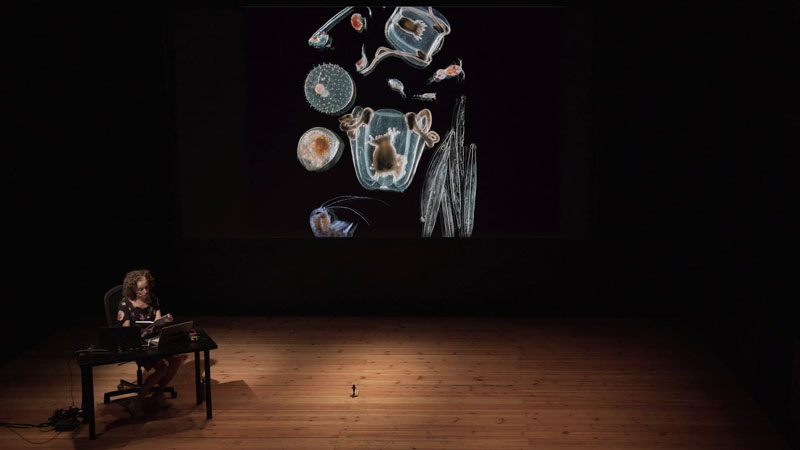 Vera Mantero partilha a sua pesquisa para sensibilizar a consciência em torno de uma ecologia interior e colectiva, a percepção do que são crimes ambientais e a função dos direitos da natureza. Uma pesquisa sobre como as baleias têm um papel importantíssimo na captura de CO2 da atmosfera. Por um lado, porque capturam e armazenam CO2 no seu corpo ao longo da sua longa vida, e por outro lado porque fertilizam o plâncton (o fitoplâncton mais especificamente) com as suas fezes nas águas de superfície, que produz 50% do oxigénio e captura 40% do dióxido de carbono da nossa atmosfera. Portanto, o pulmão do planeta, e por mais que amemos profundamente a Amazónia e a queiramos preservar em absoluto, o pulmão do planeta é certamente o fitoplâncton porque a cada duas golfadas de ar que inspiramos, uma devemo-la ao fitoplâncton…